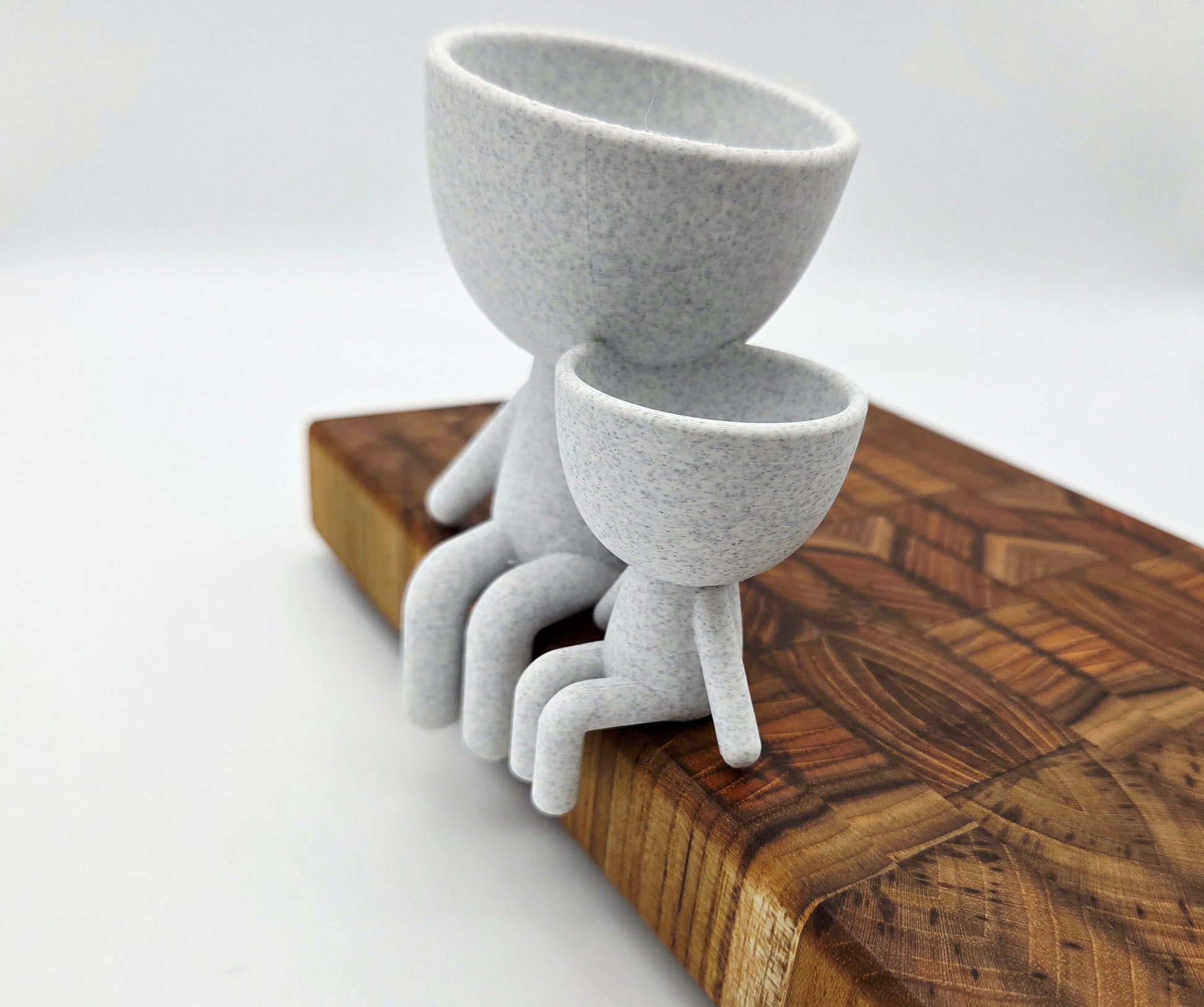 This Parent and Child Succulent Planter is a creative addition to any home or garden. The person-shaped design features a larger planter "parent" holding a smaller planter "child," symbolizing the bond between a parent and child. This planter is perfect for housing succulents, with the larger planter's size allowing for more soil and growth. Bring a touch of sweetness and whimsy to your space with this unique planter.